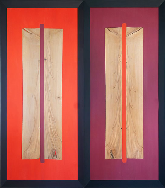 In den Bildern mit Holzteilen arbeite ich mit natürlichen Fragmenten wie Rindenstücken, Ästen, Maserknollen oder feinen Holzplatten.