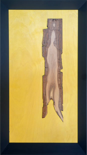 In den Bildern mit Holzteilen arbeite ich mit natürlichen Fragmenten wie Rindenstücken, Ästen, Maserknollen oder feinen Holzplatten.